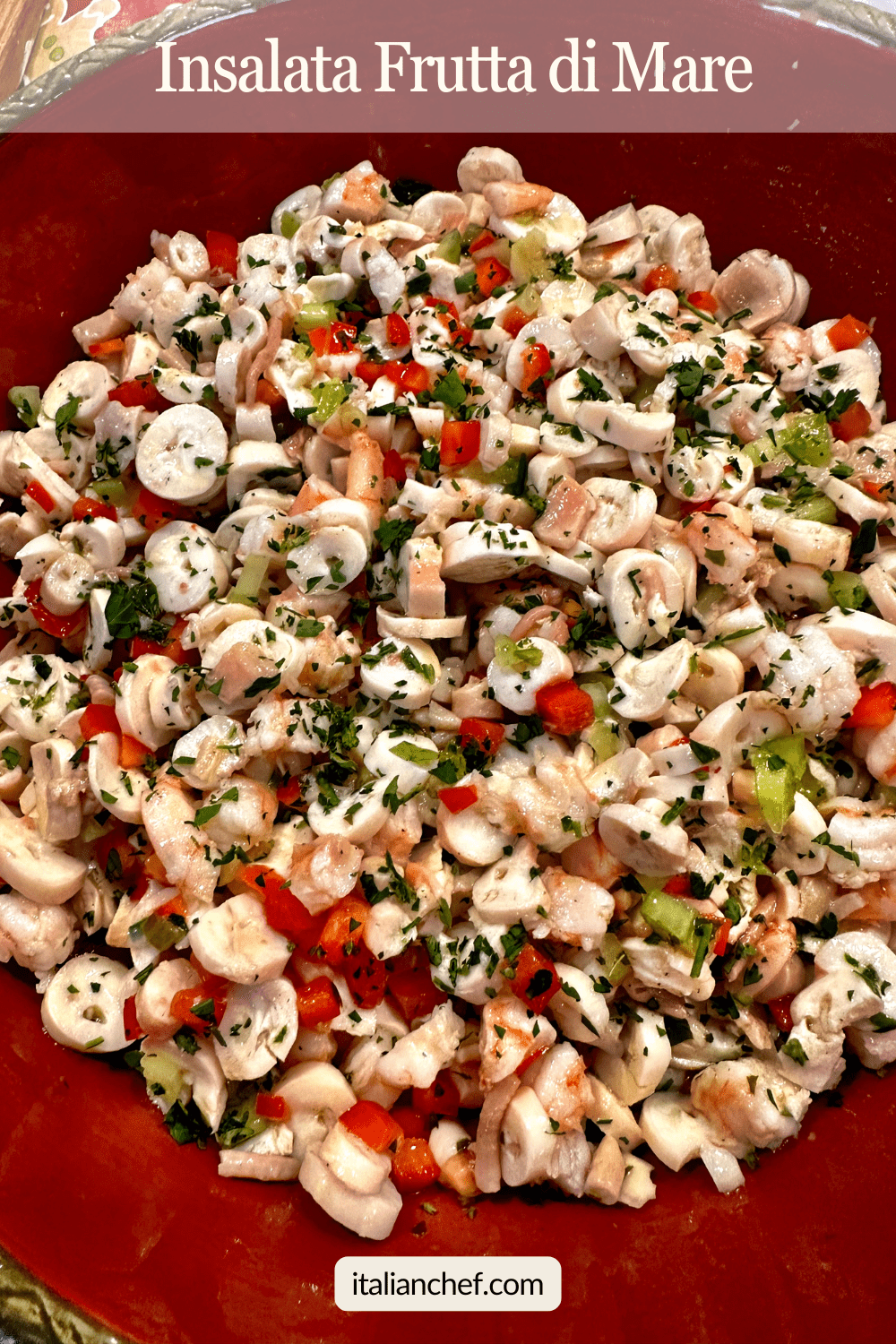 This refreshing Italian Seafood Salad (Insalata Frutta di Mare) features tender calamari, shrimp, and scungili tossed in a bright lemon and olive oil dressing. We