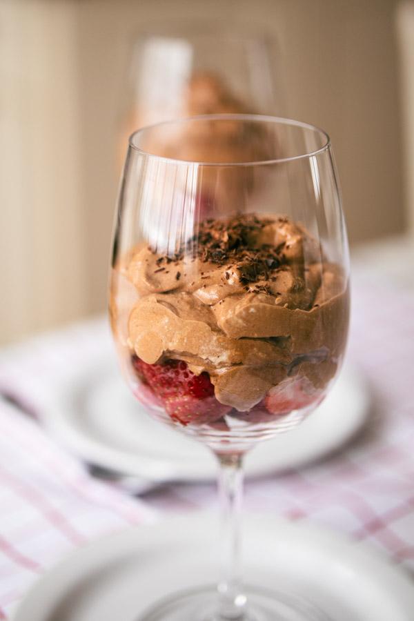 This luxurious dessert is silky smooth with rich chocolate flavor, surprisingly easy to make, and incredibly romantic served in wine glasses with fresh strawberries. It tastes kind of like a chocolate mousse, but with a little kick of flavor from the Marsala wine custard.